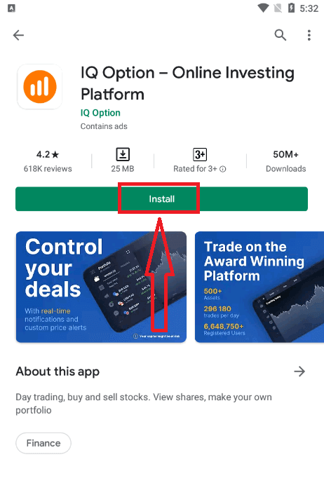 If you have an Android mobile device you will need to download the official IQ Option mobile app from Google Play or here. Simply search for “IQ Option - Online Investing Platform” app and download it on your device.The mobile version of the trading platform is exactly the same as web version of it. Consequently, there won’t be any problems with trading and transferring funds. Moreover, IQ Option trading app for Android is considered to be the best app for online trading. Thus, it has a high rating in the store.